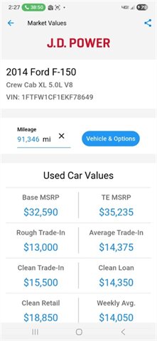 2014 Ford F-150 1OWNER 91K ML. CREW 5.0L V8 RUBS&DRIVES GREAT!!A/C
