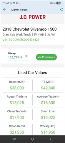 2018 Chevrolet Silverado 1500 CREW 4X4 5.3L CANOPY RUNS&DRIVES GREAT A/C BEDLINE