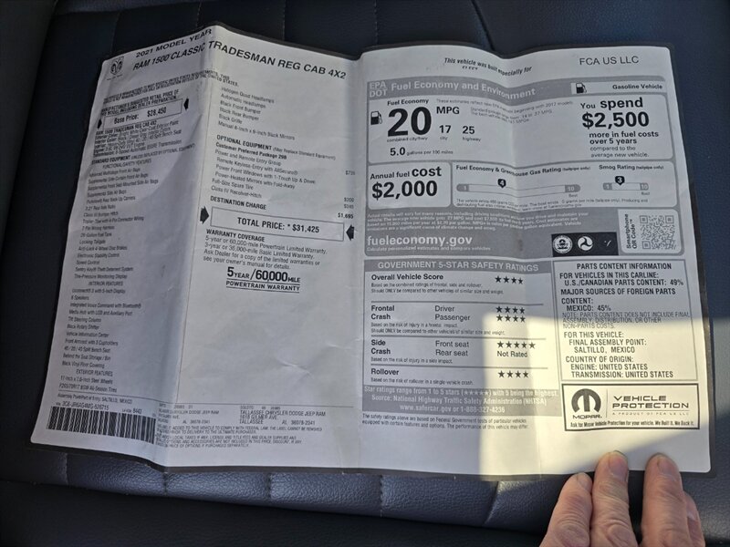 2021 RAM 1500 Classic 1OWNER 8FT-BED POWER W/L/C RUNS&DRIVES GREAT!!